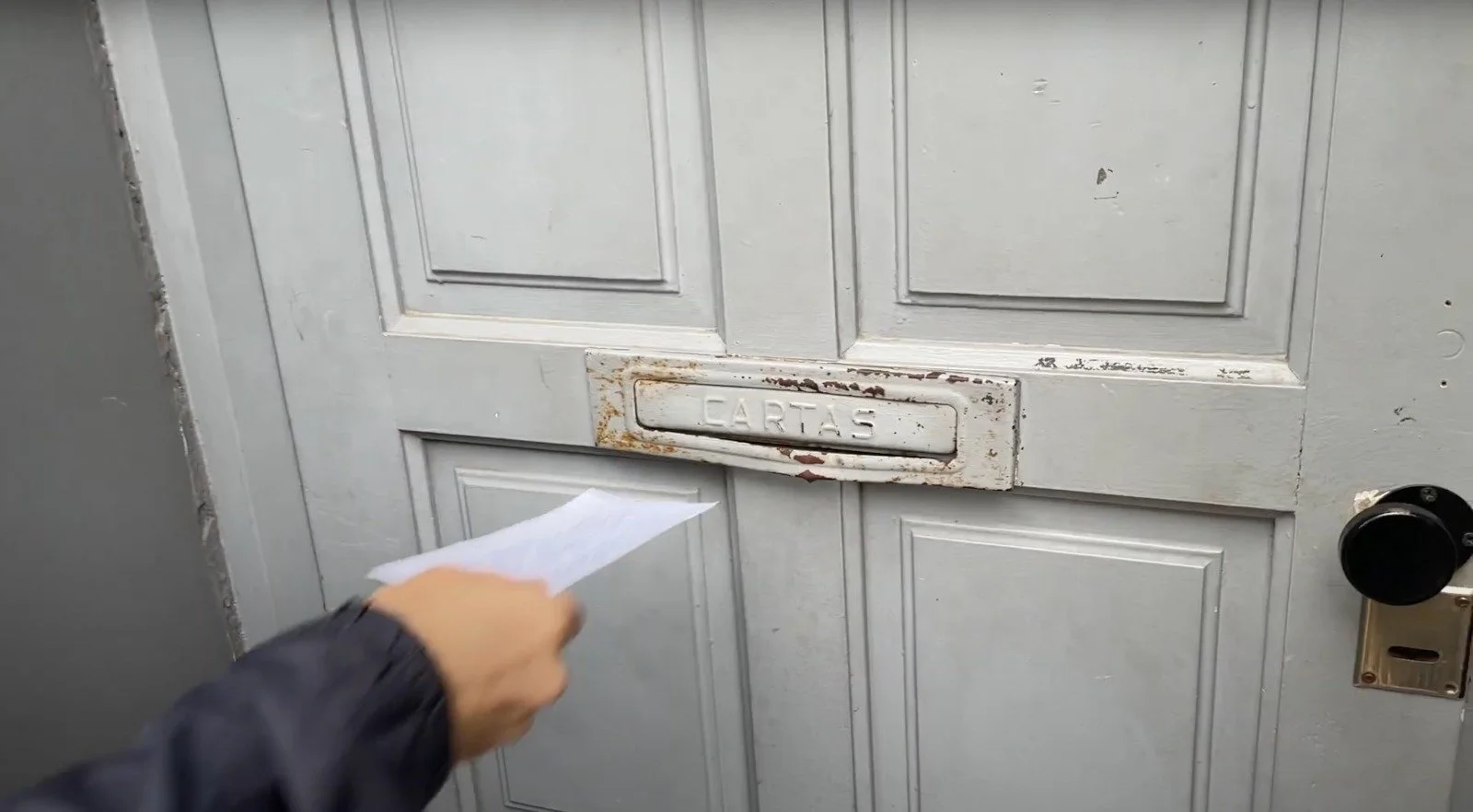 Ponelo en el buzón de una casa o debajo de una puerta.